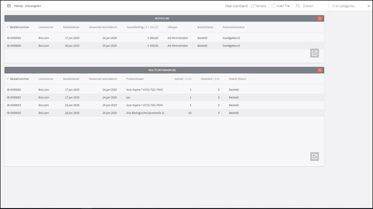 · Nog te ontvangen: In deze lijst staan alle bestelregels waarvan de producten of dienst nog niet of niet volledig zijn geleverd.