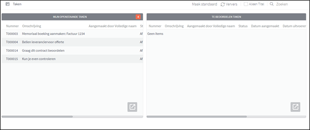 · Mijn openstaande taken: In deze lijst staan alle taken die de ingelogde gebruiker op een bewust moment nog moet verrichten.