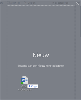 De eerste optie is de e-mail met de documenten van de offerte in FileLinx te classificeren door deze naar het scherm van FileLinx te slepen en dan voor optie Nieuw te klikken.