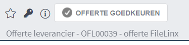Als alle verwachte offertes vastgelegd zijn dan kan beslist worden welke leverancier gekozen zal worden. Dat wordt in FileLinx door middel van de knop “Offerte goedkeuren” vastgelegd. De knop is beschikbaar op alle offerte leveranciers van het inkoopdossier.